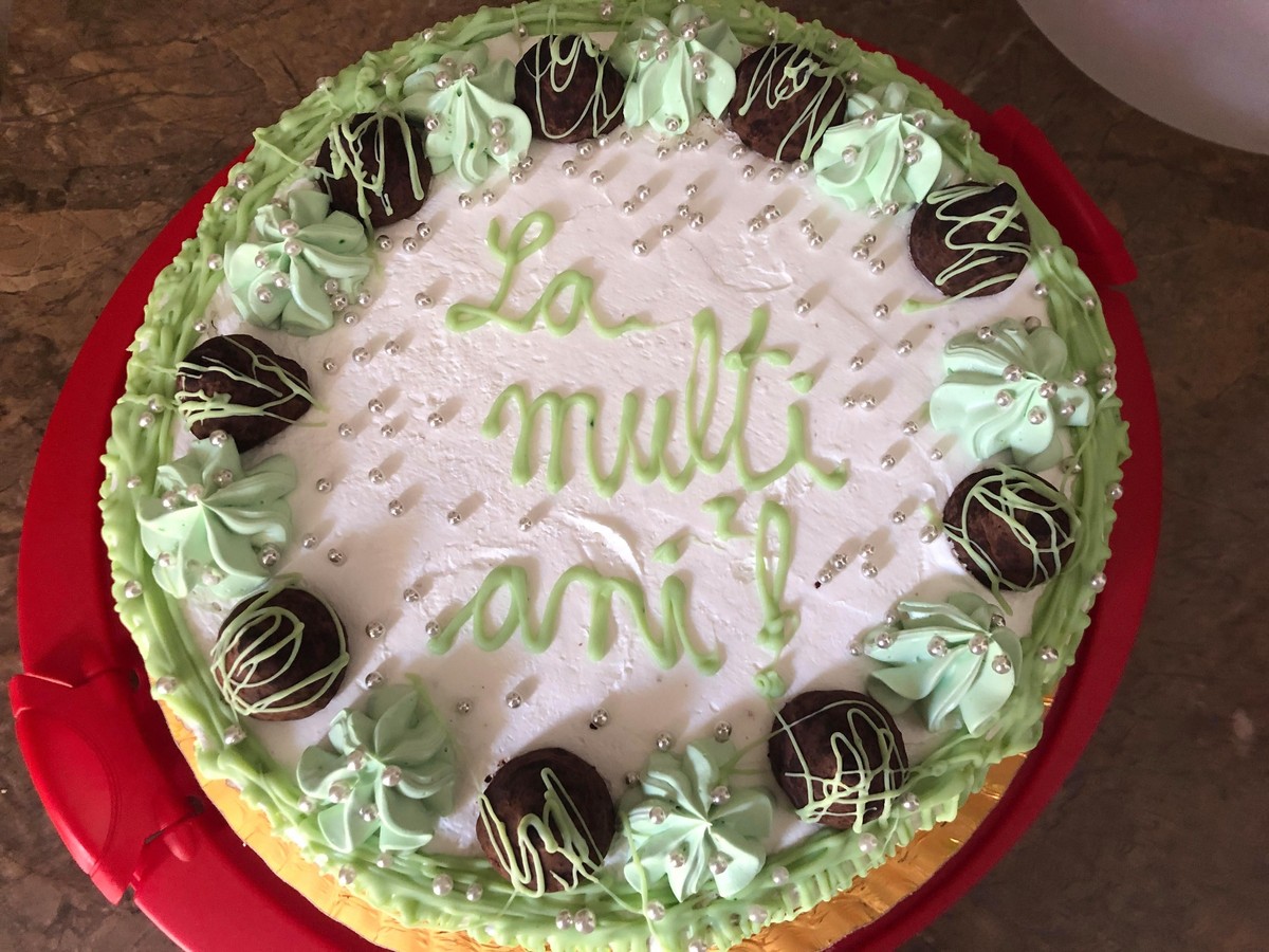 Am făcut un ocol până în alt cartier ca să luăm la bord o prietenă, apoi am urcat pe Colină și la coborâre, ambalată și plină de emoție…. am scăpat tortul pe jos! S-a deplasat, s-a lăsat și a arătat cam…. neplăcut. Gustul a fost demențial de bun, însă prezentarea a lăsat mult de dorit. Am umbrit cei 44 de ani ai Lui Remusică. El s-a amuzat de situație și pare a fi un tip care ține la glume.